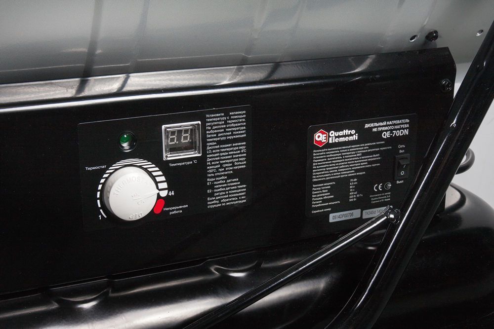 Дизельный нагреватель индустриальной серии с непрямым нагревом. Предназначен для использования в технических помещениях, где находятся люди. Выхлопные газы, образующиеся при сгорании топлива, отводятся за пределы помещения с помощью воздуховодов (поставляются отдельно). Топливный бак увеличенного объема позволяет использовать нагреватель длительное время без дозаправки. Модель оборудована встроенным термостатом, а контроль режимов работы и заданной температуры осуществляется по встроенному цифровому дисплею. Управление работой осуществляется микропроцессором и электронной платой производства Samsung. Модель оснащена транспортировочными пневматическими колесами.