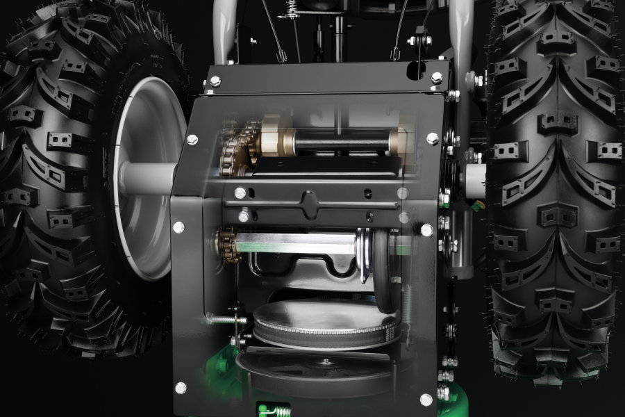 Снегоуборщик Caiman Valto 24CVE является самоходным и оснащен колесами с надежным зимним протектором. Фрикционный диск обеспечивает плавное переключение передач, при этом оператору доступно несколько скоростей: вперед и две назад. Для повышения удобства предусмотрены разблокировка колес и взаимная блокировка рукояток, а также регулируемые направляющие, позволяющие адаптировать работу под разные условия поверхности.